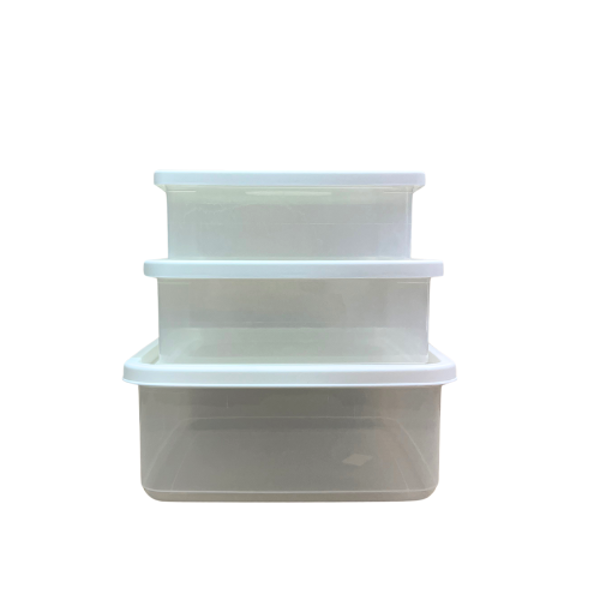 סט 3 קופסאות פלסטיק מרובעות - צבע משתנה, 0.7 ליטר, 0.9 ליטר, 1.3 ליטר כחול/לבן/ורוד