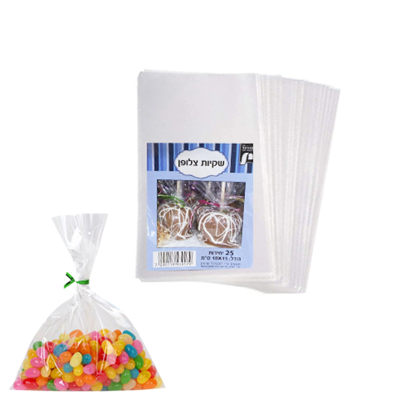 שקיות צלופן פתוח 15*10 ס"מ 25 יח', שקיות צלופן ללא פס דבק,שקיות צלופן לעטיפה