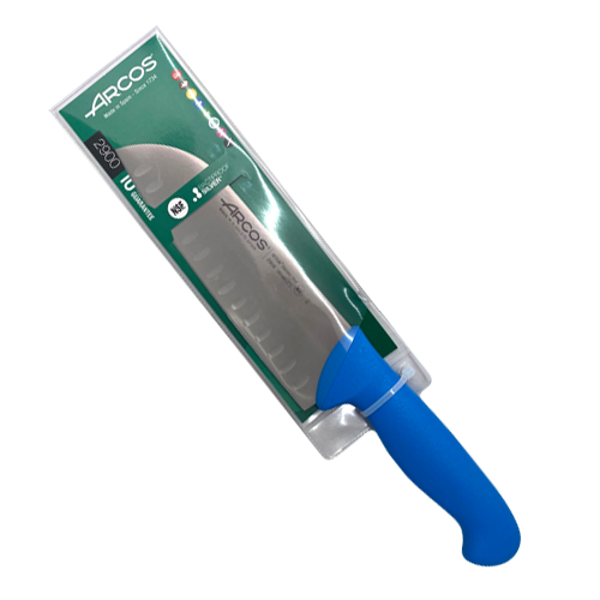 סכין ARCOS סנטוקו מקצועית - כחול, להב רחב עם קצה חלק. סכין רב שימושית לשפים וחובבים,