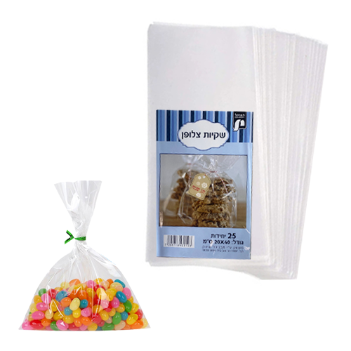 שקיות צלופן פתוח 40*20 ס"מ 25 יח', שקיות צלופן ללא פס דבק,שקיות צלופן לעטיפה