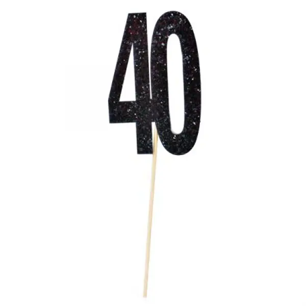 טופר לעוגה יום הולדת 40 - שחור גליטר,עיצוב שולחן יום הולדת 40