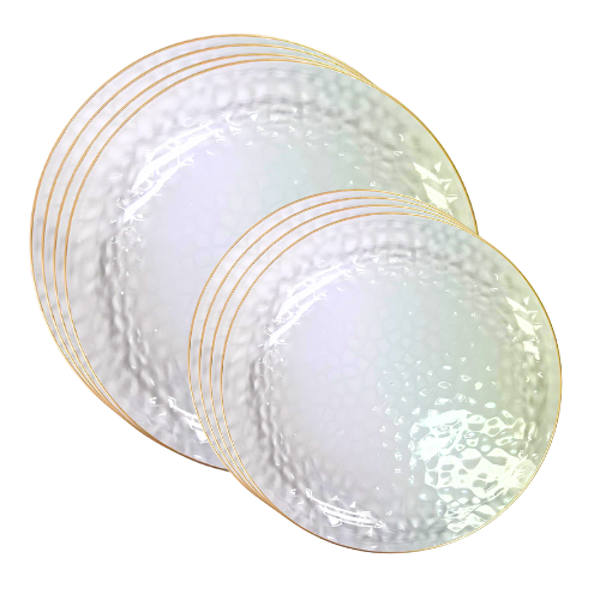 סט צלחות בועות 16 יח' פס זהב - שקוף