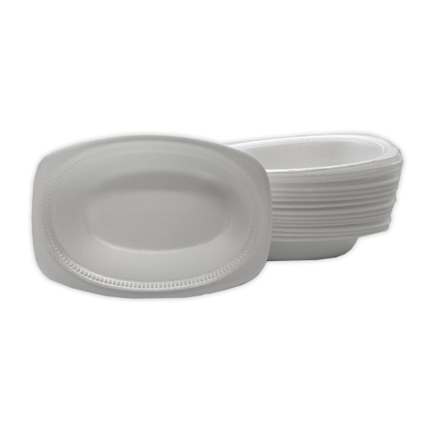 צלחת קלקר אובלית עמוק 1 ליטר 20 יח' - לבן. צלחות חד פעמיות מקלקר .