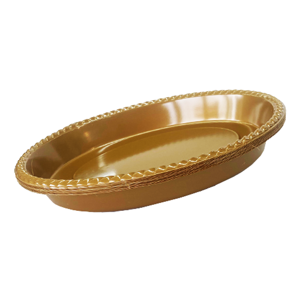 מגש פלסטיק אובלי color ארוז 10 - זהב, מגשים חד פעמיים, מגש מגשים אירוח פיצוחים.