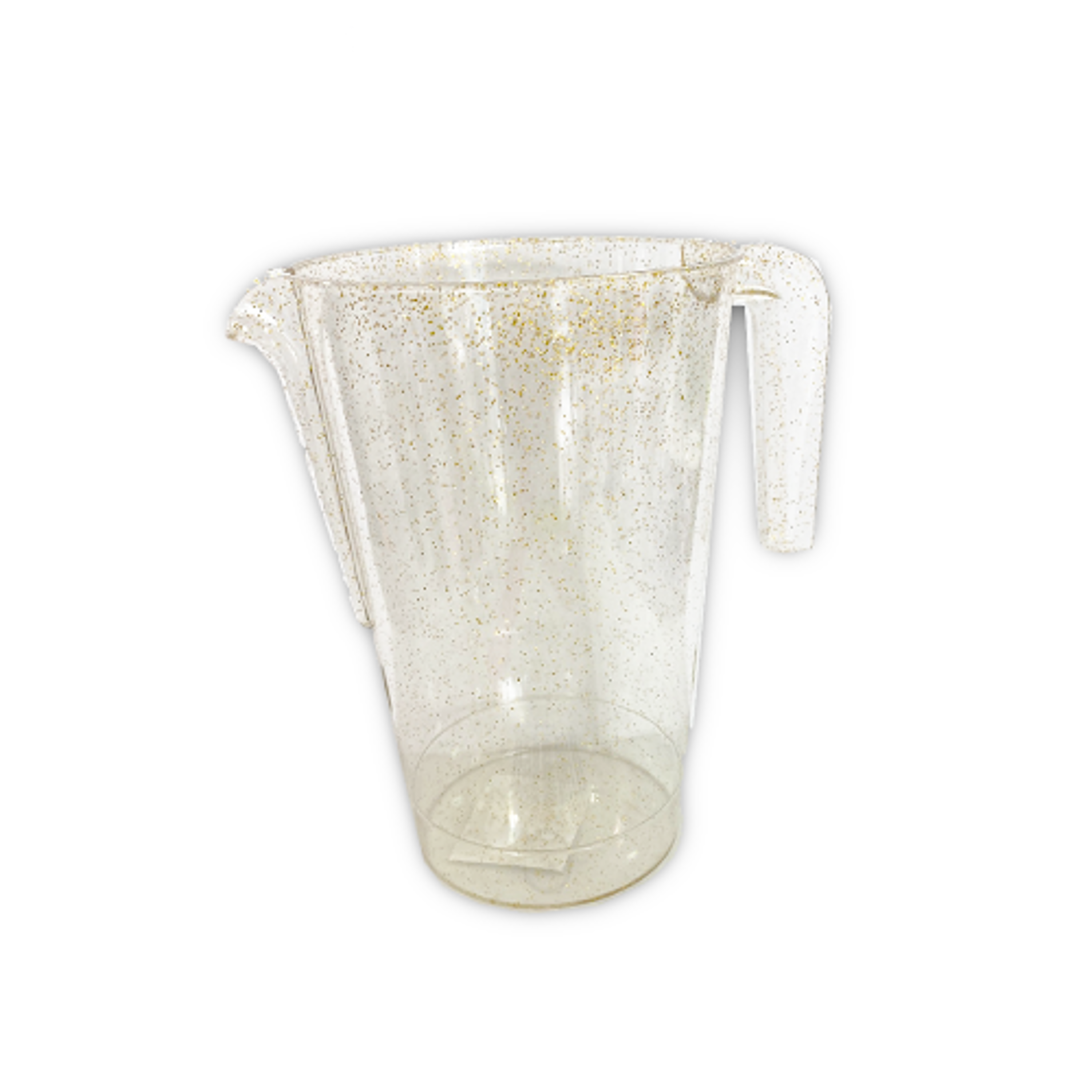 קנקן פלסטיק ניצוצות- זהב. קנקן שתייה למים / מיץ שקוף עם נצנוץ זהב.