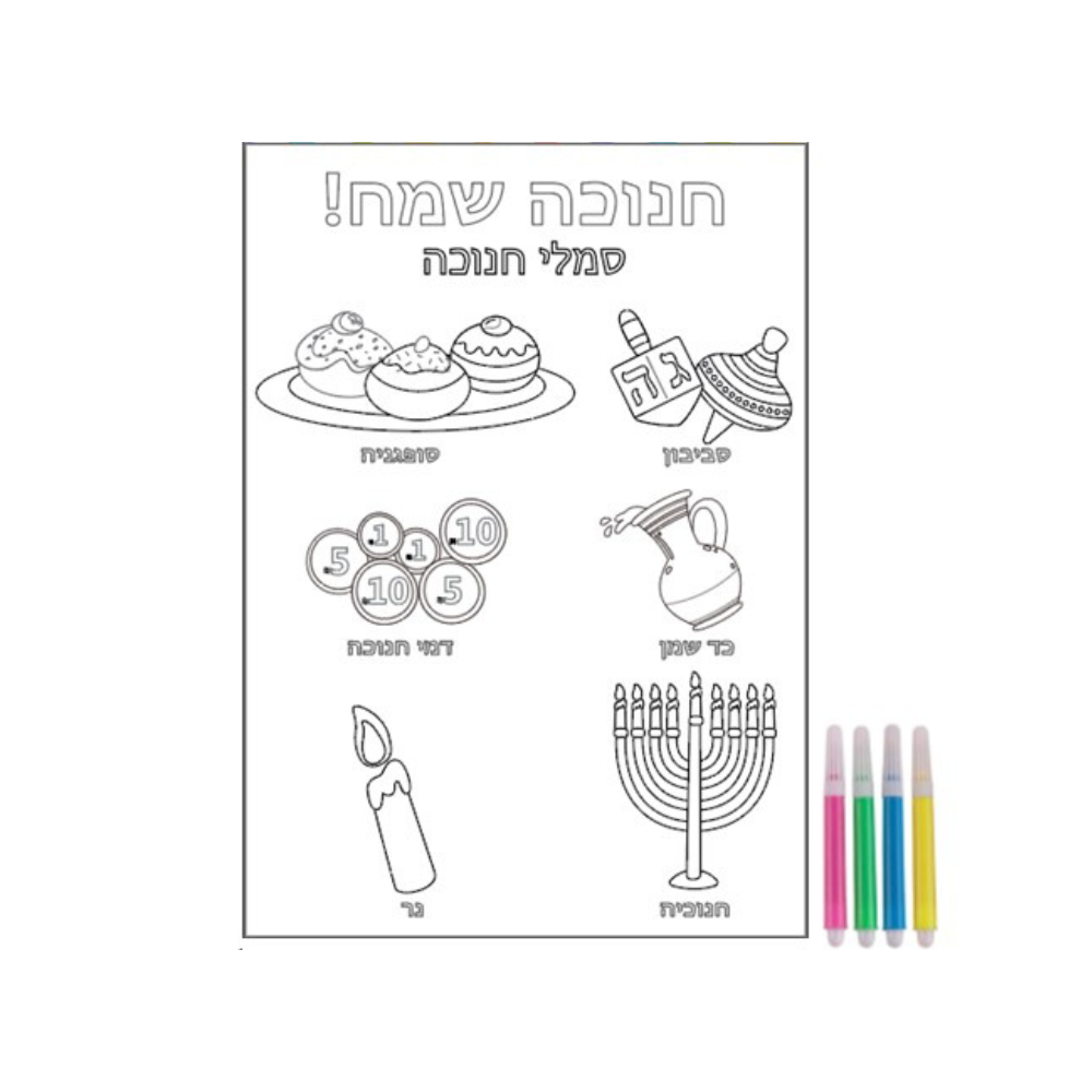 יצירה לחנוכה סמלי חנוכה + טושים A4