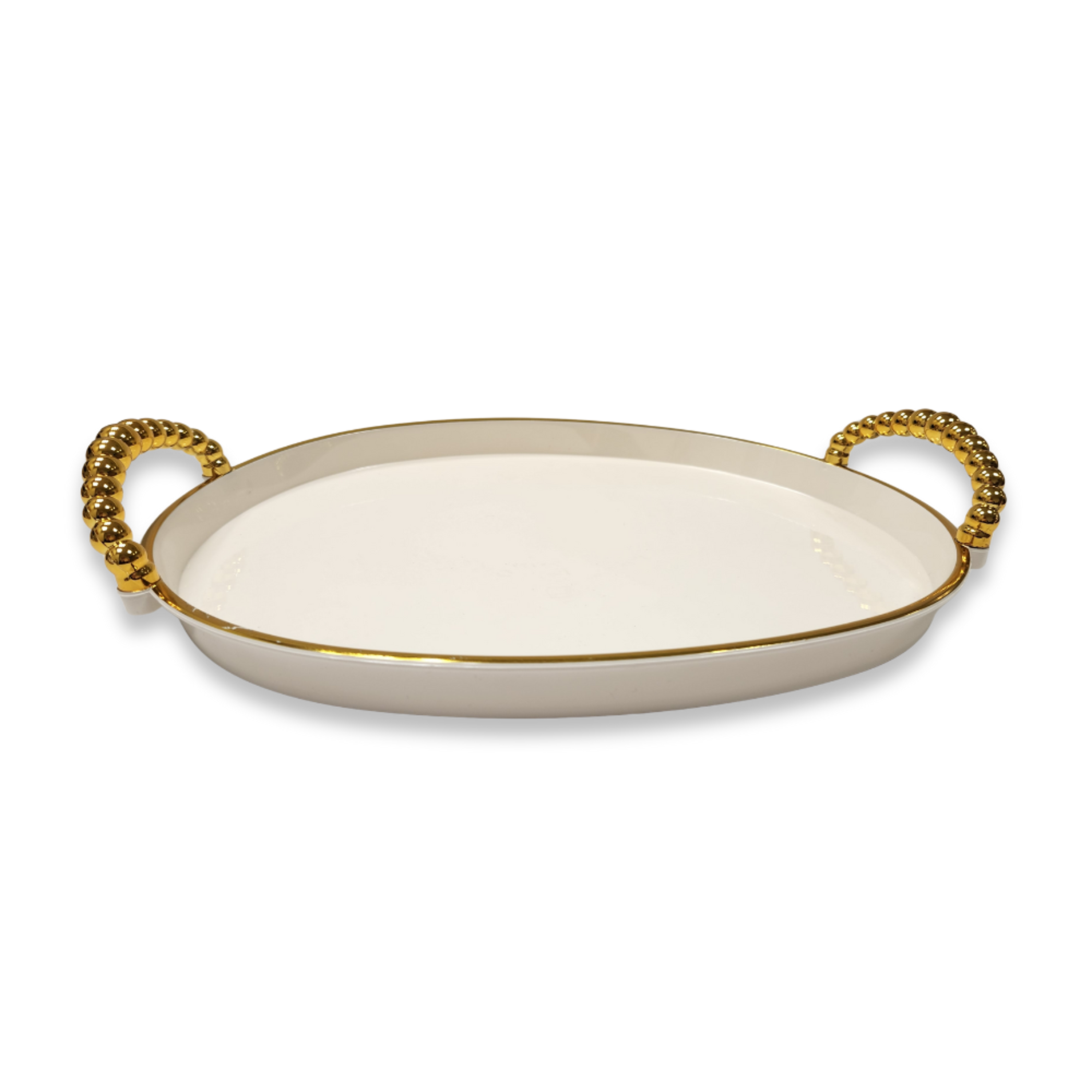 מגש אקריליק אובלי קטן עם ידיות - קרם זהב,
