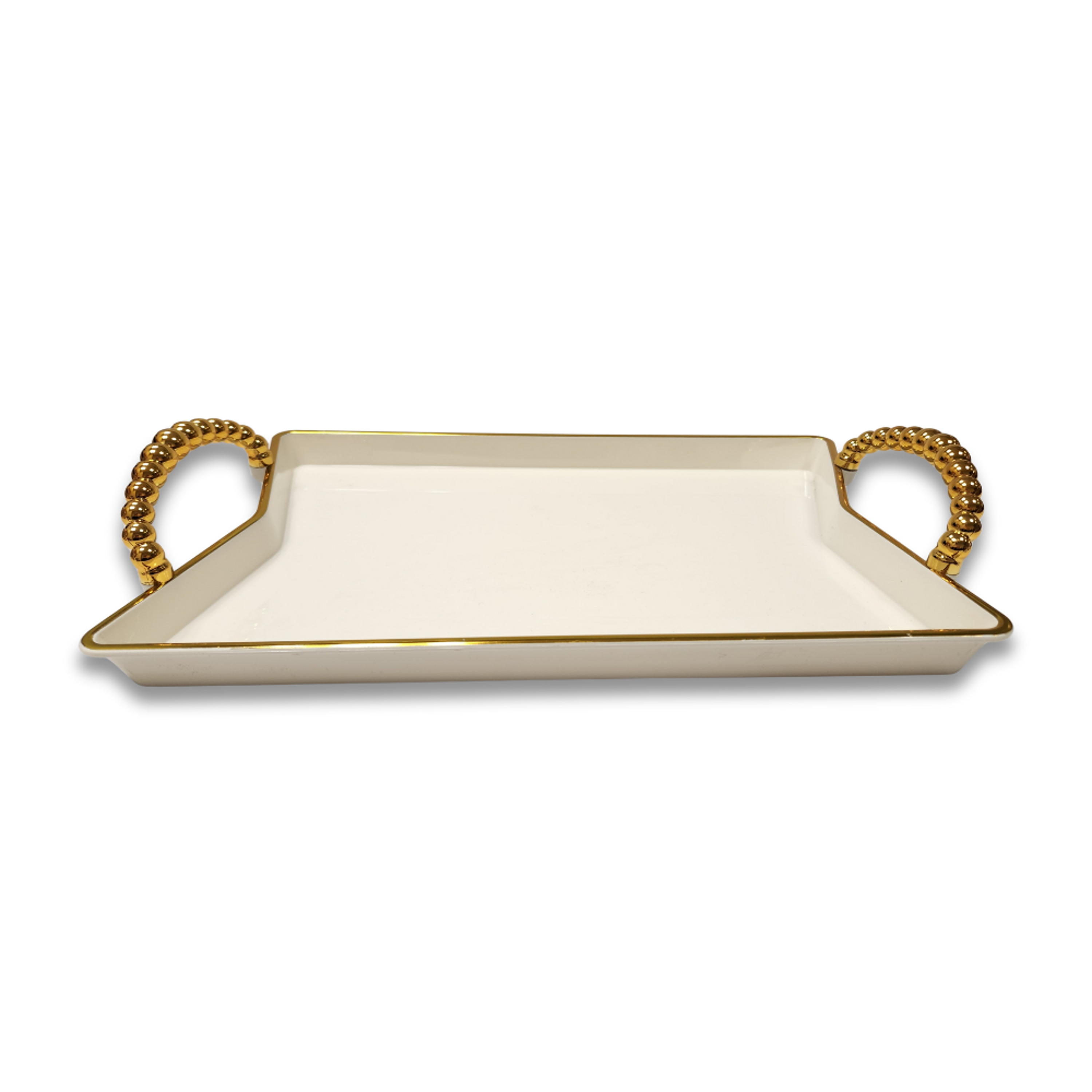 מגש אקריליק מעוין קטן עם ידיות - קרם זהב,