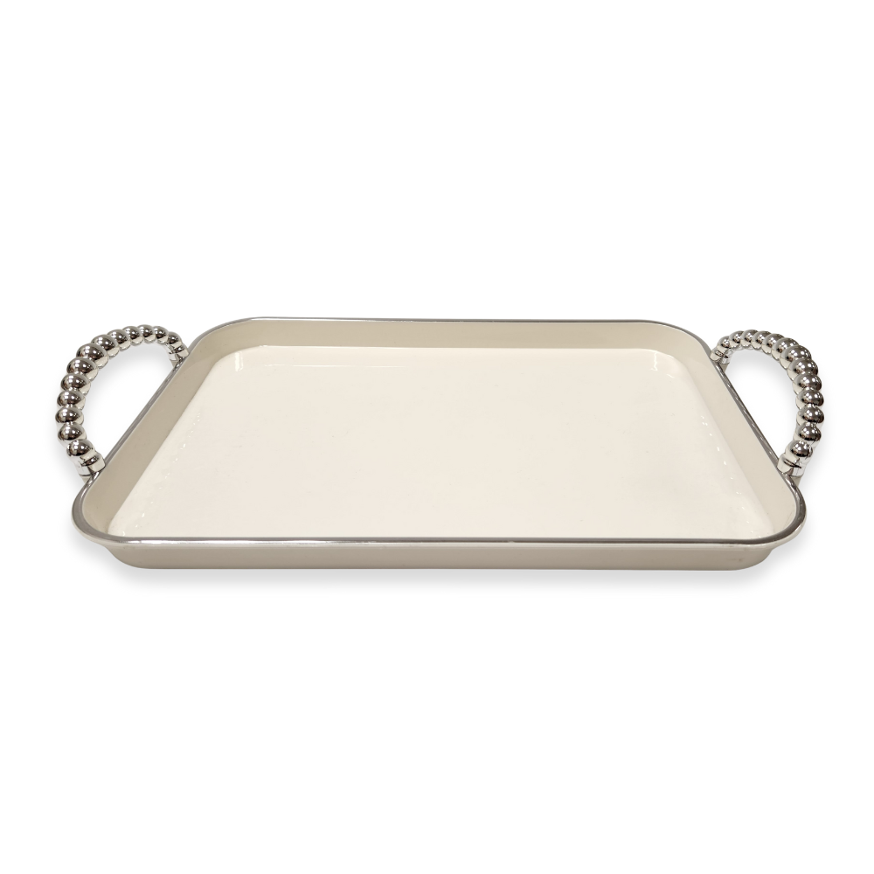 מגש אקריליק מלבן עם ידיות קטן - קרם כסף,