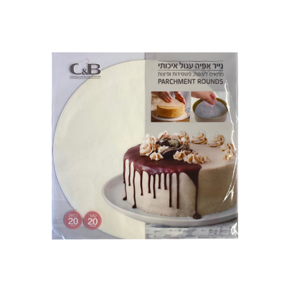 נייר אפייה עגול קוטר 20 ס"מ , נייר אפייה לתבנית עגולה עמיד עד 230 מעלות