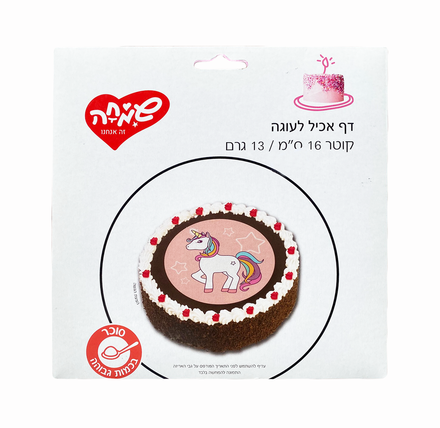 דף אכיל לקישוט עוגה - חד קרן. דף אכיל עגול חד קרן לקישוט עוגה.