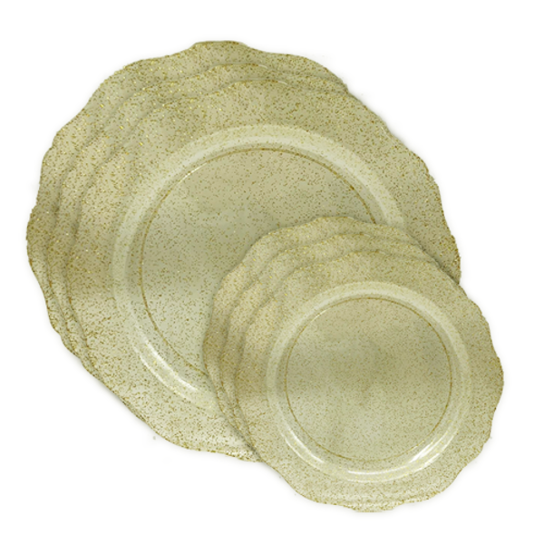 סט צלחות קשיחות ליסה ניצוצות 16 יח' - ניצוצות זהב,