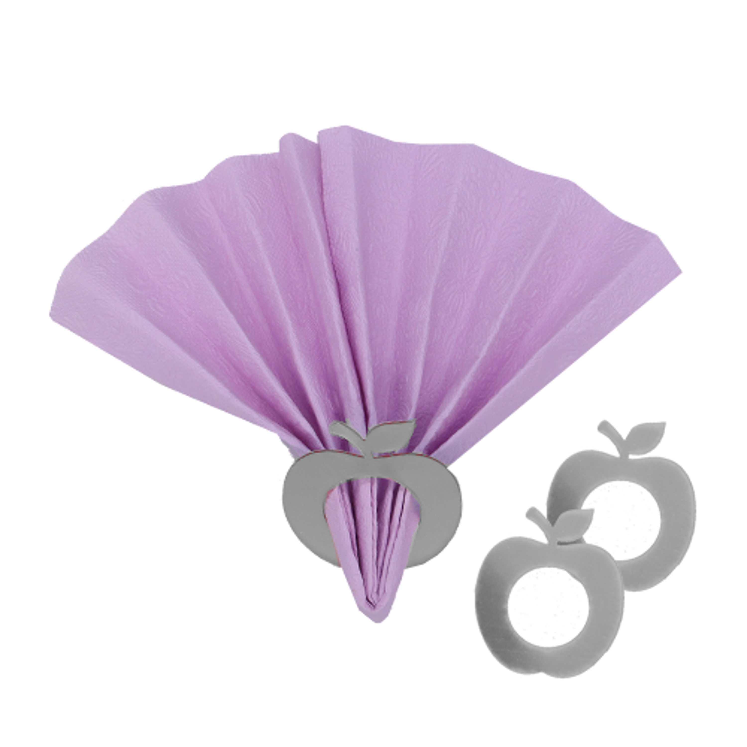 חבק מראה תפוח 6 יח' - כסף, חבקים למפיות לעיצוב שולחן ראש השנה.