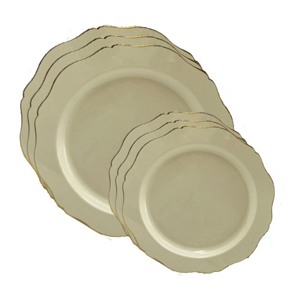 סט צלחות קשיחות ליסה פס זהב 16 יח' - קרם,