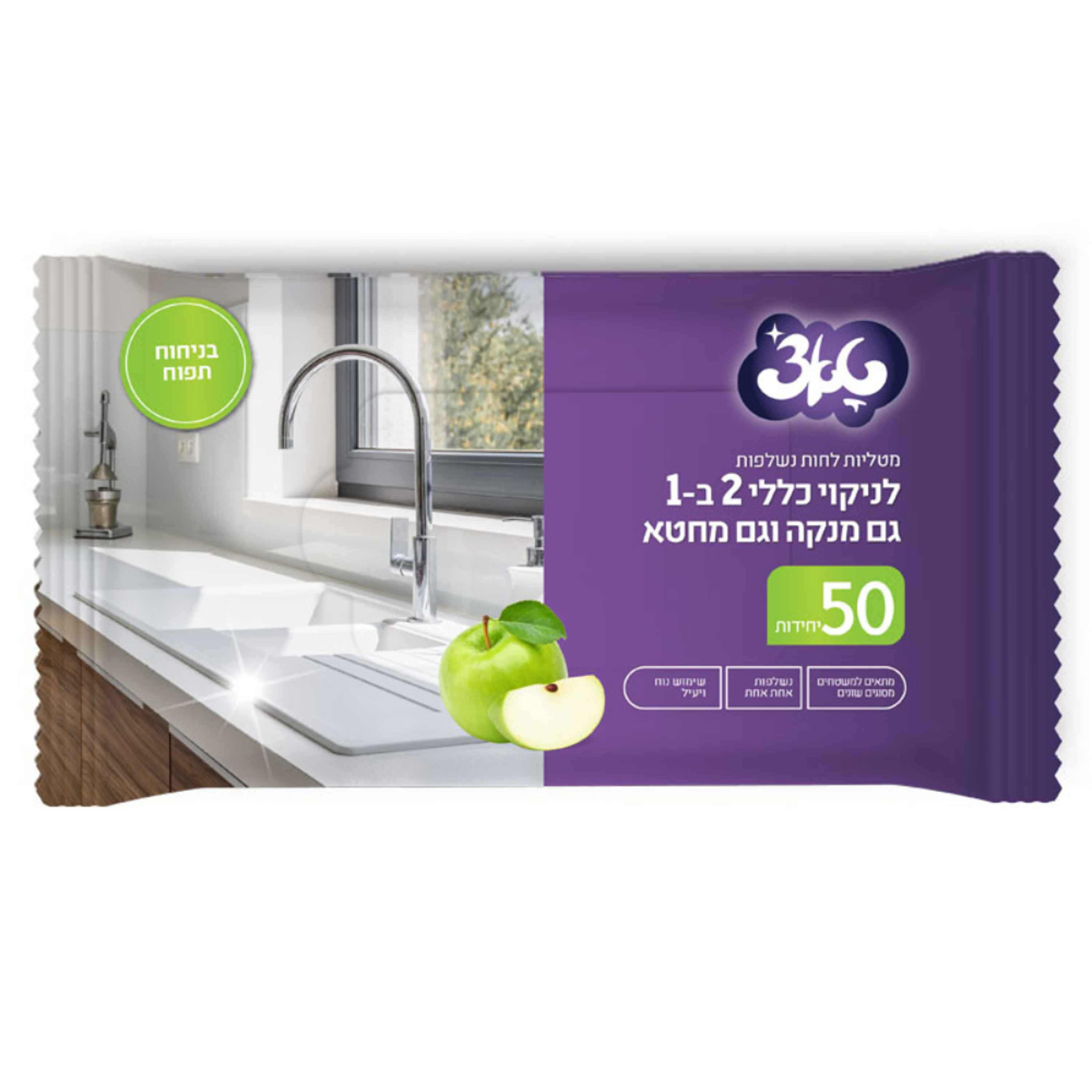 מטליות לחות לחיטוי 2 ב-1 - ניחוח תפוח,