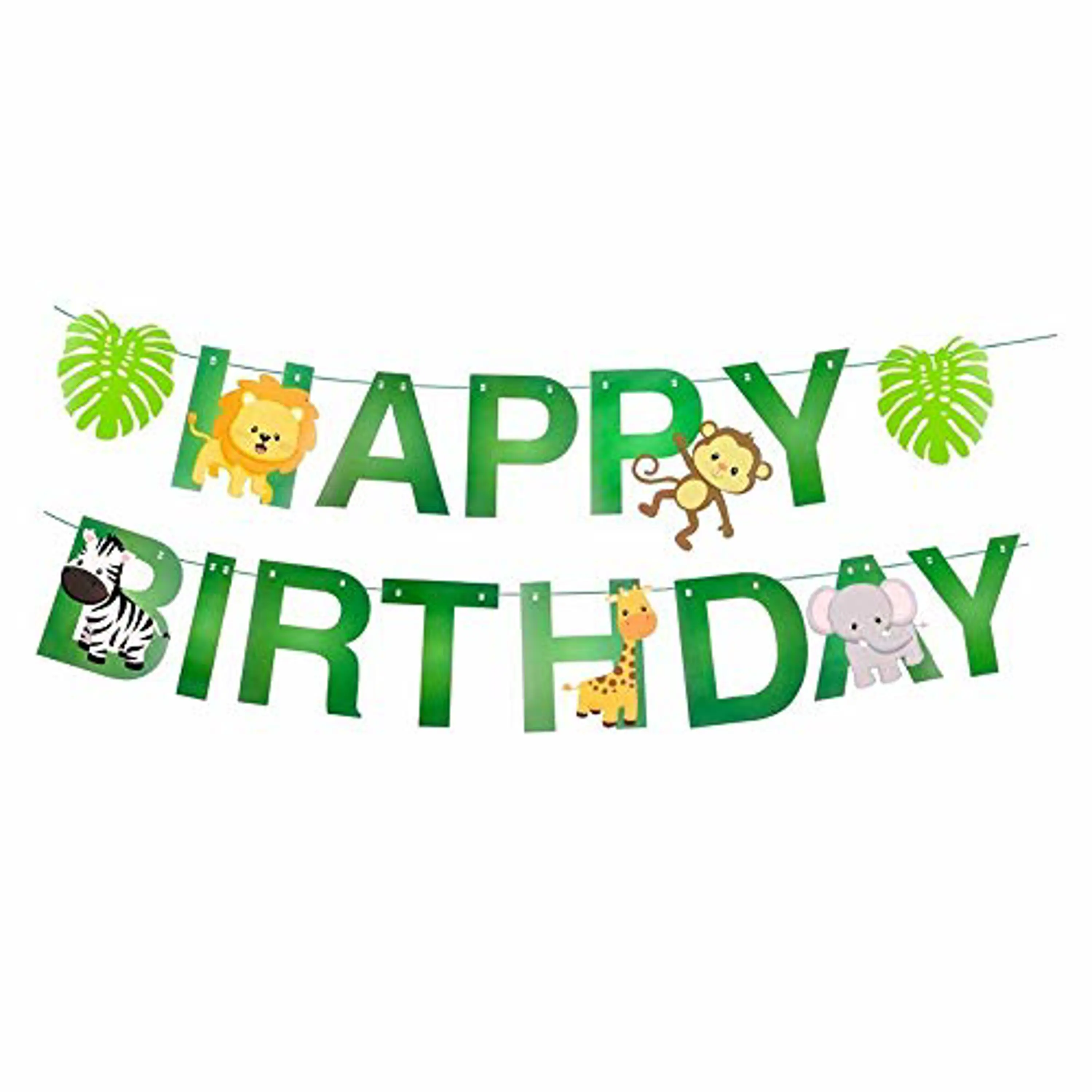 שרשרת HAPPY BIRTHDAY  לתלייה- ג'ונגל , יום הולדת חיות, יום הולדת גן חיות,חלק מסט יום הולדת ג'ונגל הכולל: צלחת ג'ונגל, כוס ג'ונגל, קופסת פופקורן וחטיפים ג'ונגל, טופר לעוגה ג'ונגל, קיסמים לקישוט ג'ונגל, דף אכיל ג'ונגל