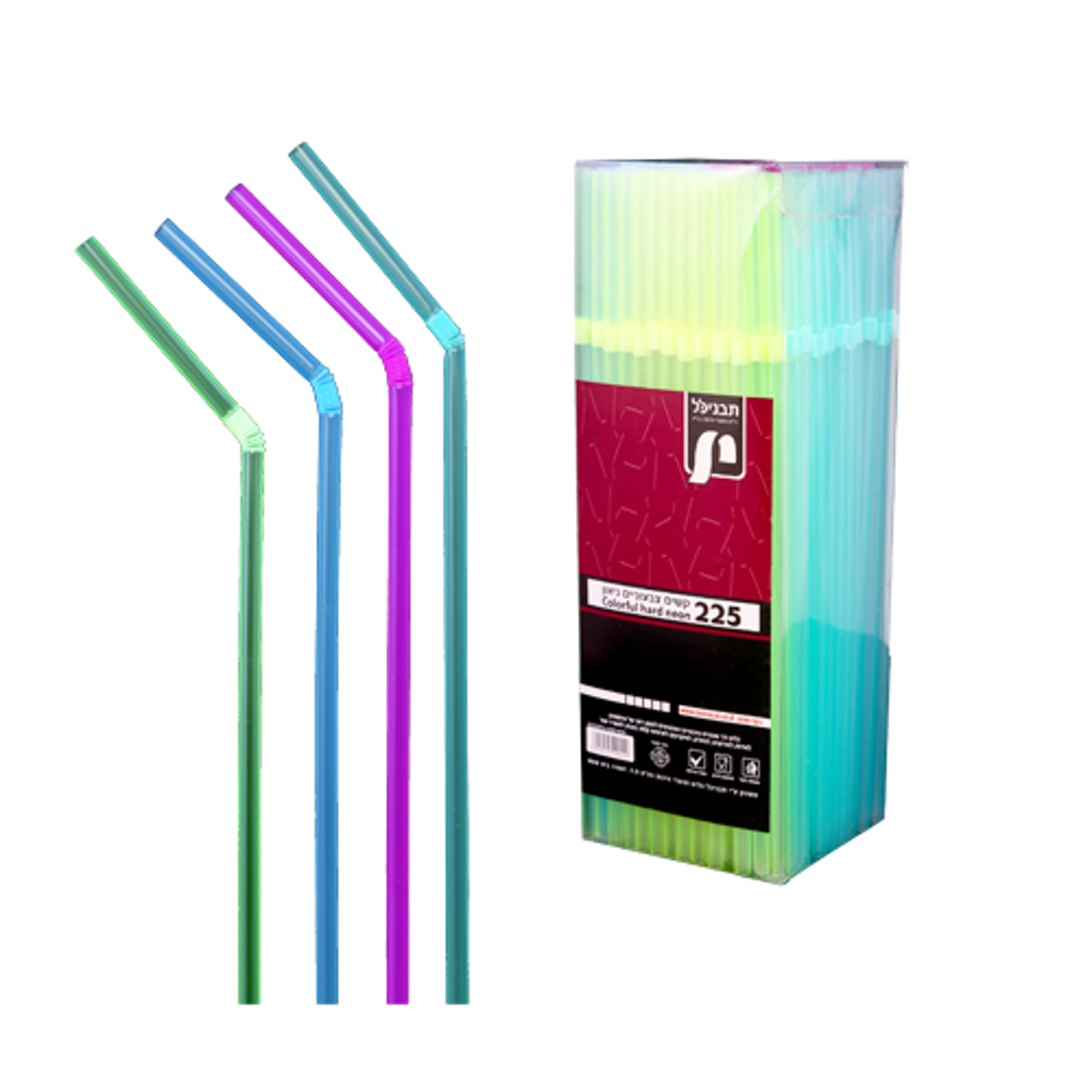 קשיות לשתייה 225 יח' - צבעי ניאון. קשיות פלסטיק צבעוניות לשתייה.