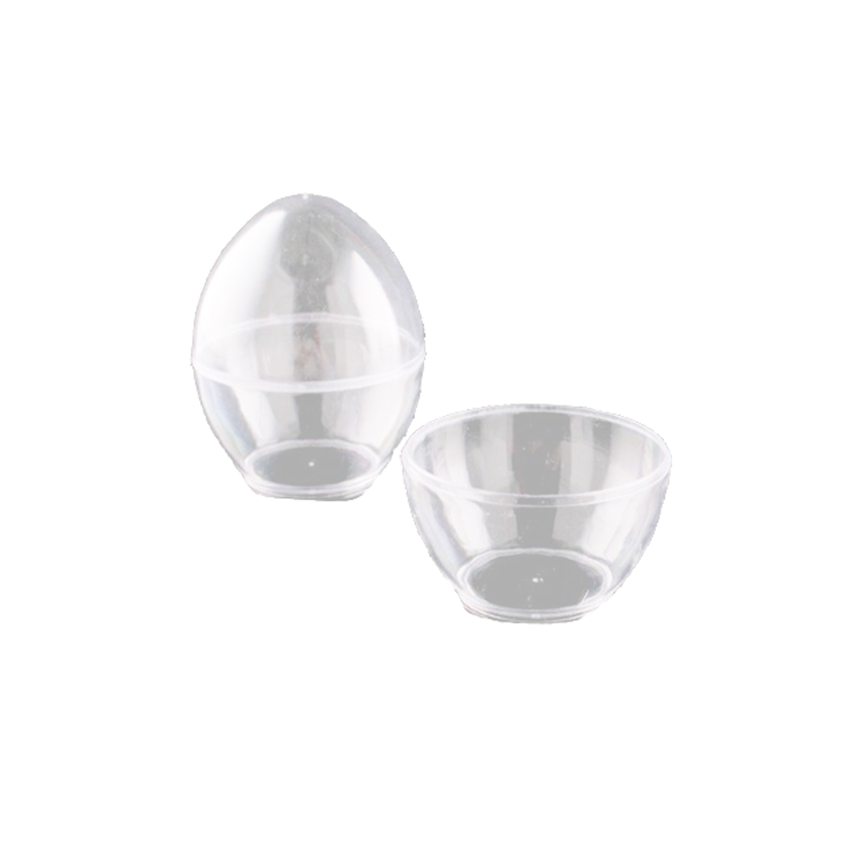 ביצת הקינוח 10 יח' - שקוף, כלי פלסטיק לקינוח בצורת ביצה.