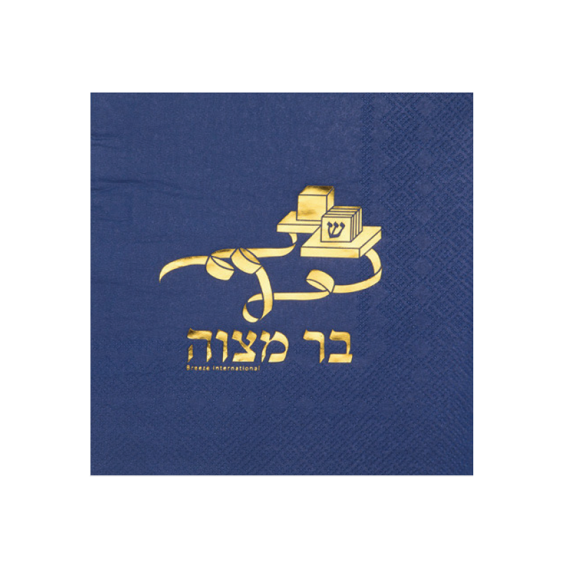 16 מפיות נייר לבר מצווה בצבע כחול כיתוב זהב