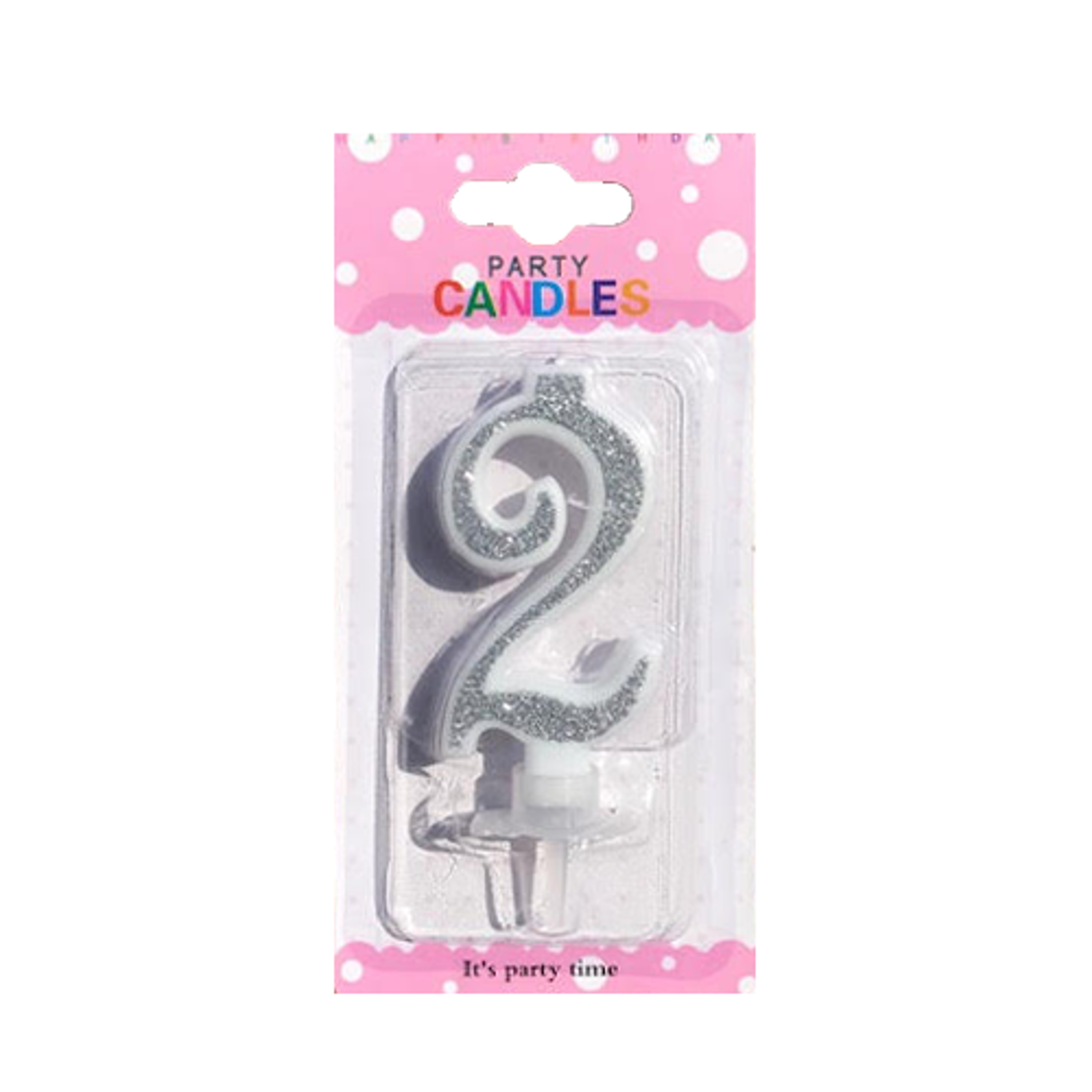 נר יום הולדת מעוצב מספר 2 - כסף,נר יום הולדת גיל 2,עיצוב שולחן יום הולדת, נרות יום הולדת לעוגה