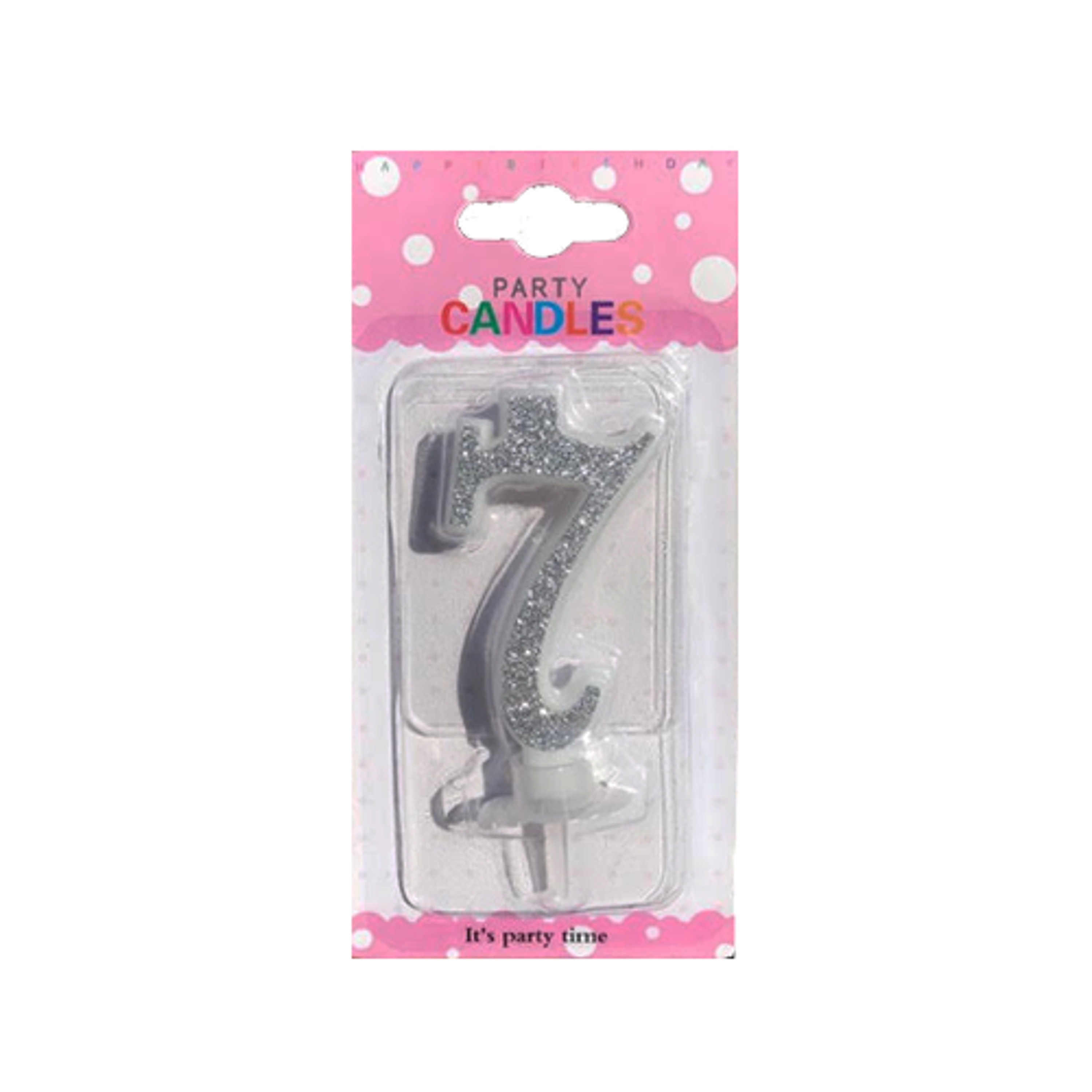נר מעוצב מספר 7 - כסף,נר יום הולדת לגיל     7, עיצוב שולחן יום הולדת