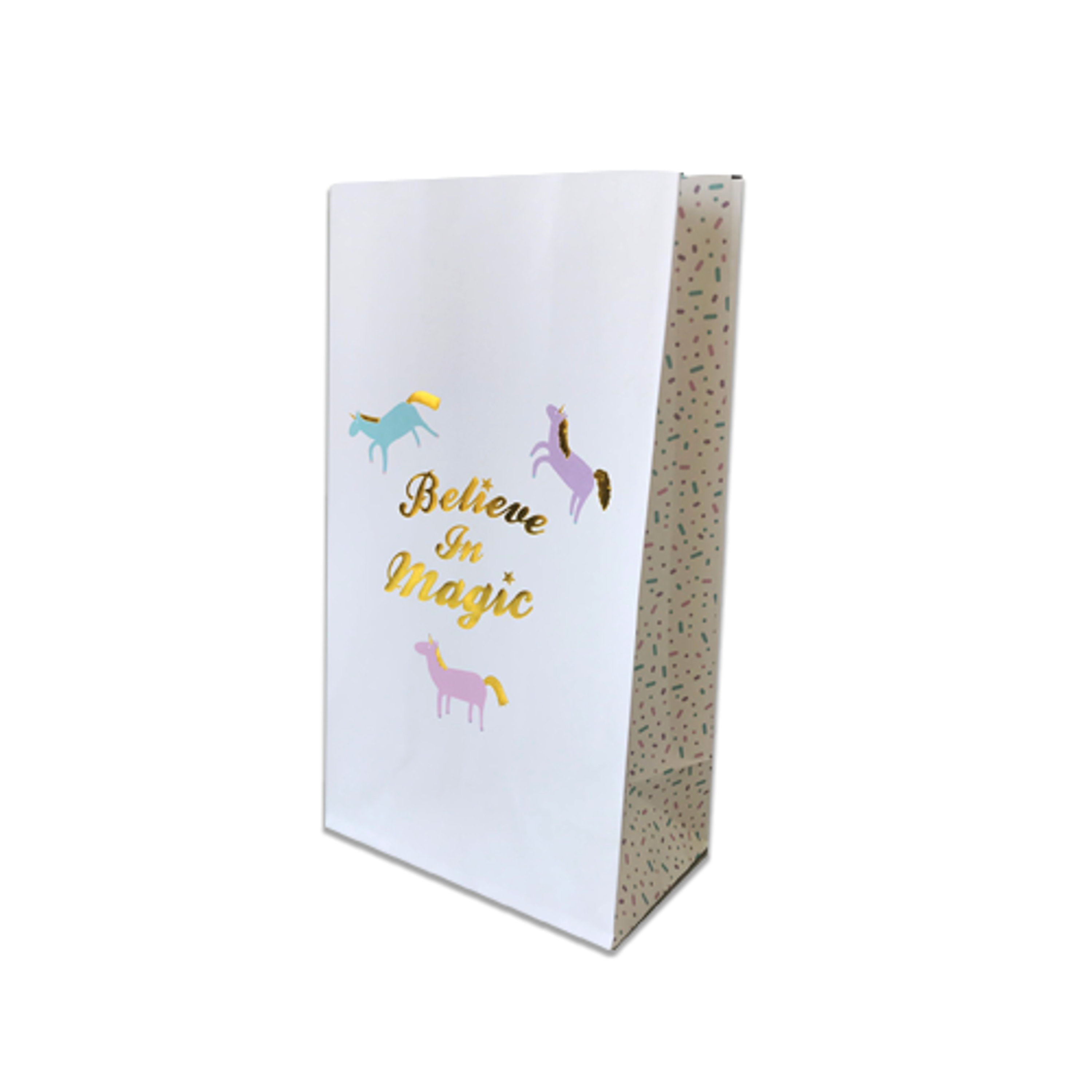 שקיות נייר Believe in magic - לבן. שקיות נייר מעוצבות לחגיגה.