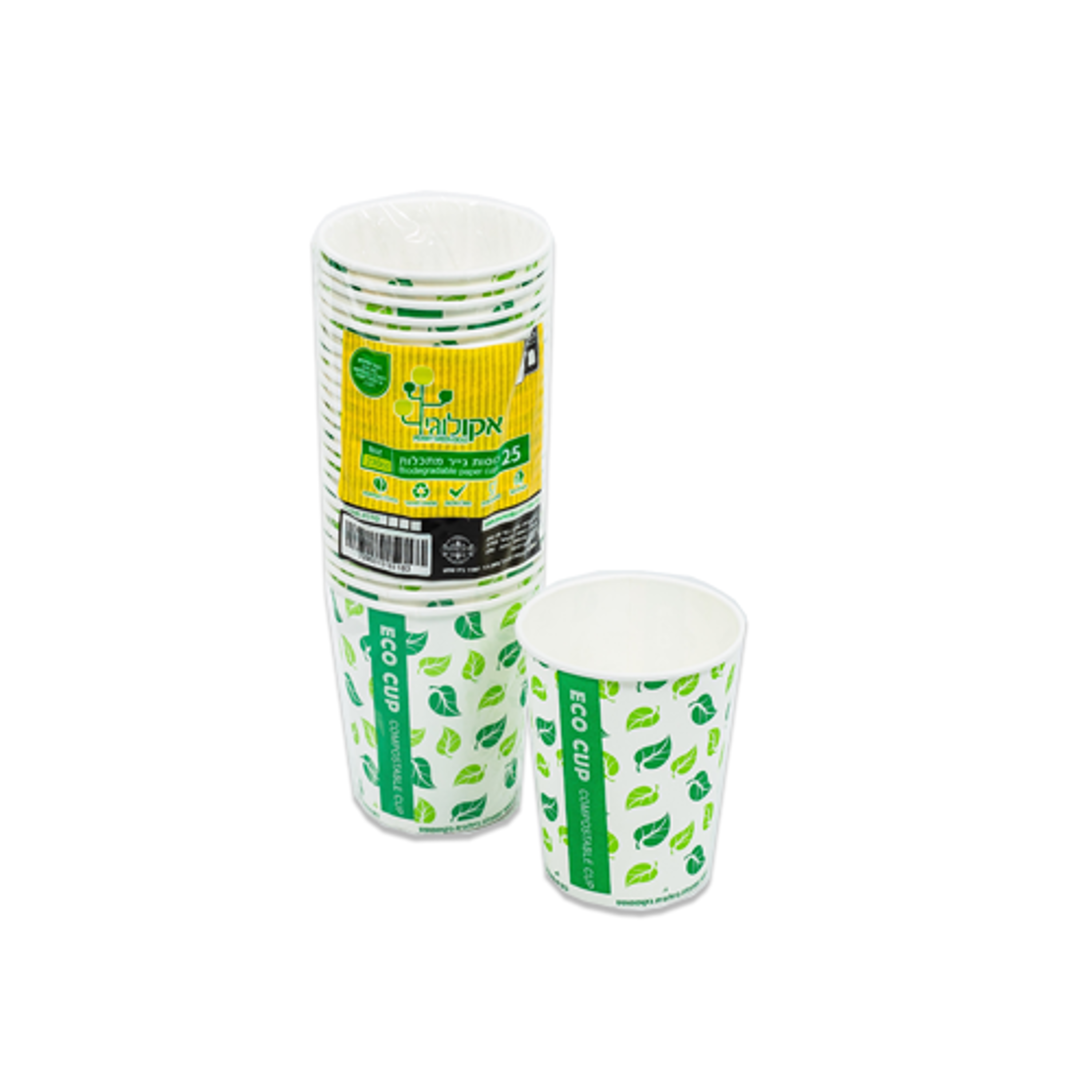 כוסות אקולוגיות מתכלות 40 יח' 8OZ - בינוני, כוסות מתכלות מנייר לשתייה קרה וחמה.