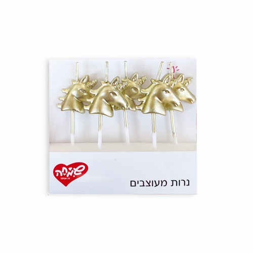 נרות מעוצבים  חד קרן - זהב, קישוט עוגת יום הולדת חד קרן, נר לקאפקייקס חד קרן מטאלי
