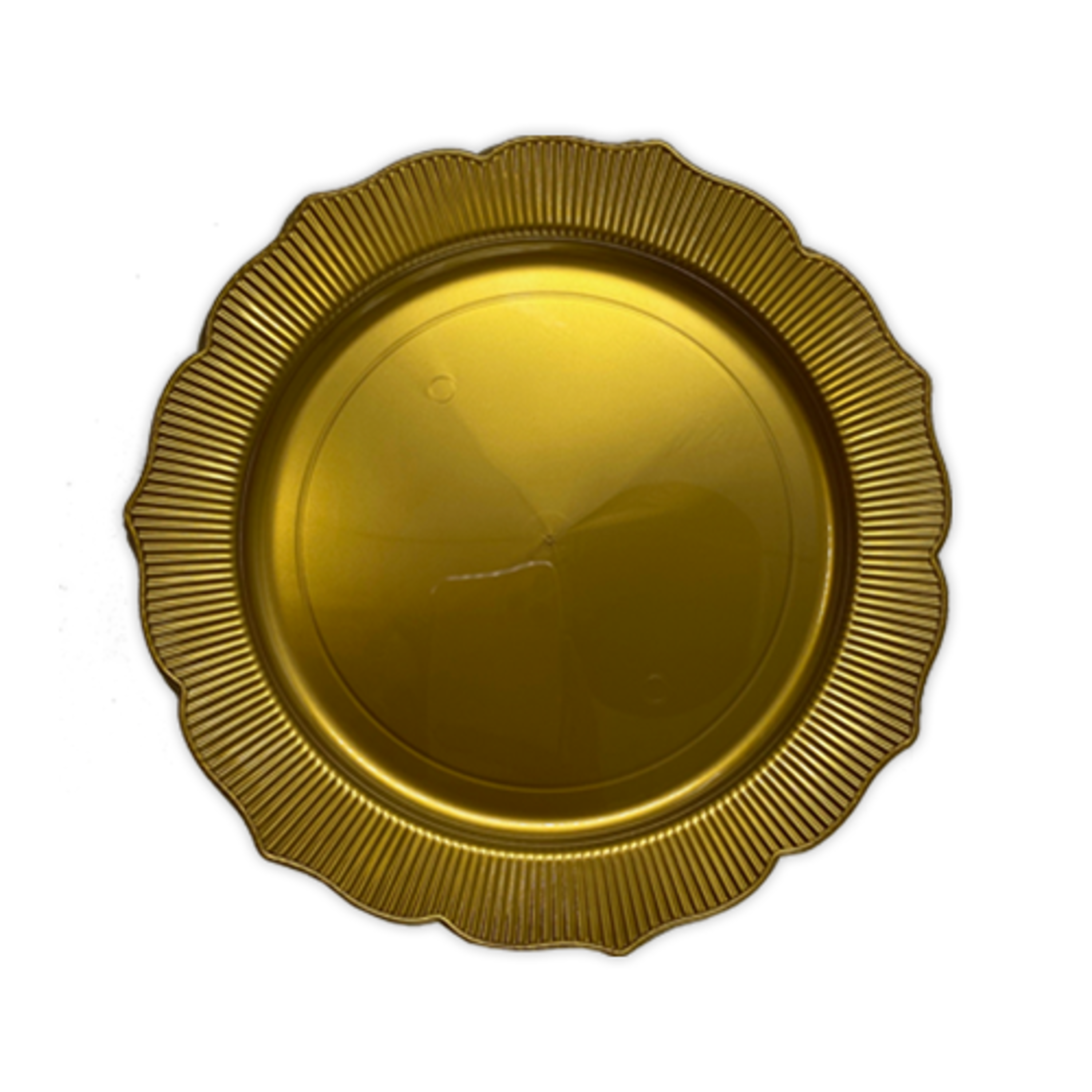 צלחת פלסטיק 9 כלנית - זהב , צלחת חד פעמית מהודרת.