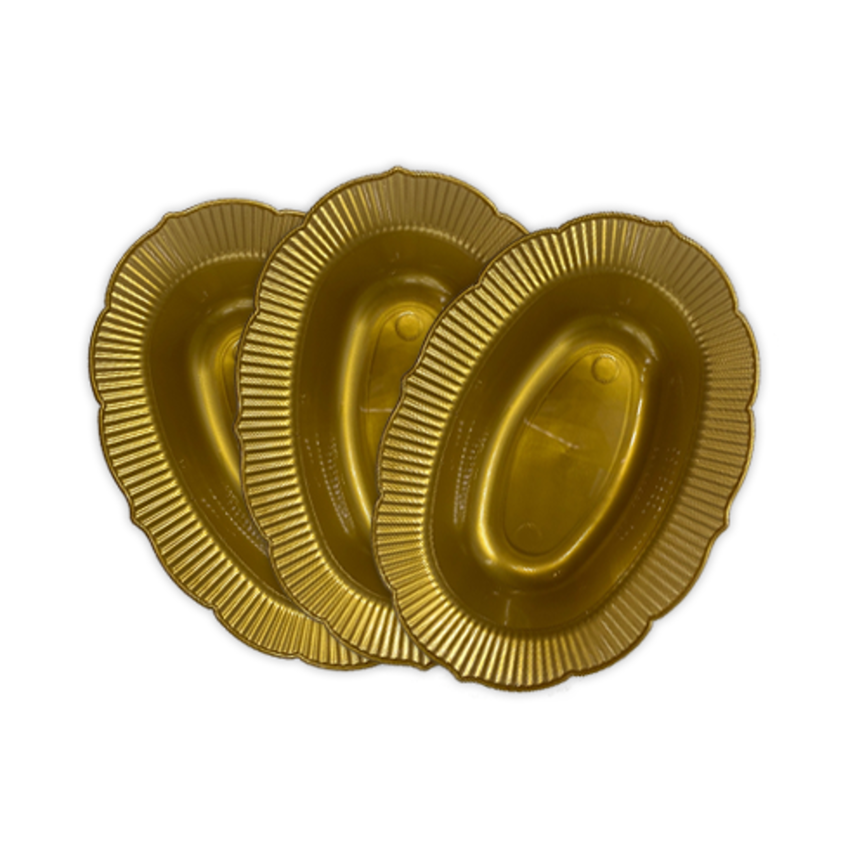 קסרול פלסטיק כלנית - זהב, צלחת חד פעמית קשיחה להגשת סלטים.