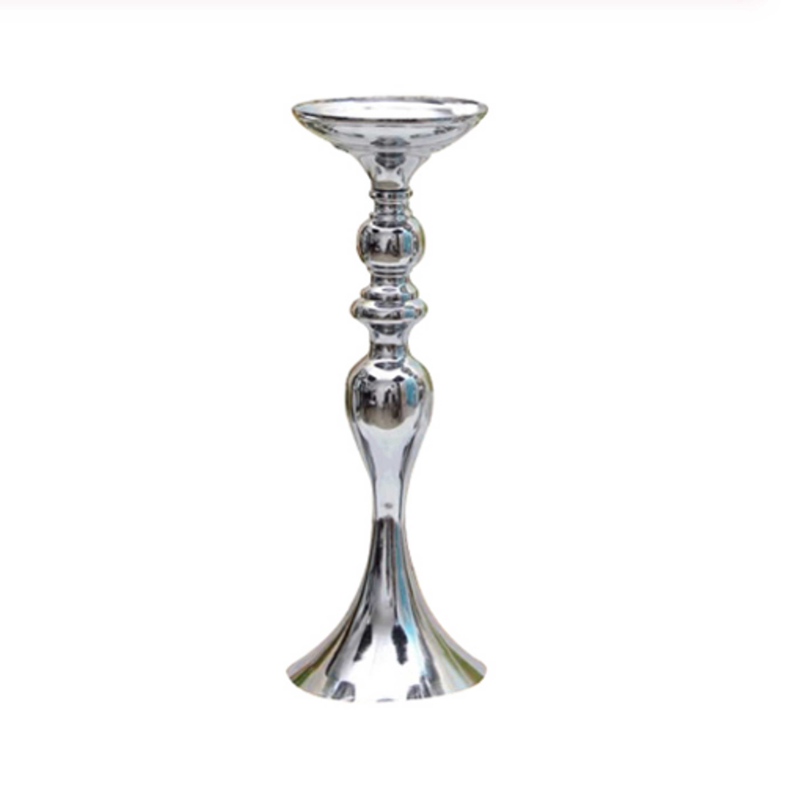 פמוט מתכת 35 ס"מ - כסף פמוטים לבנים לעיצוב שולחן.