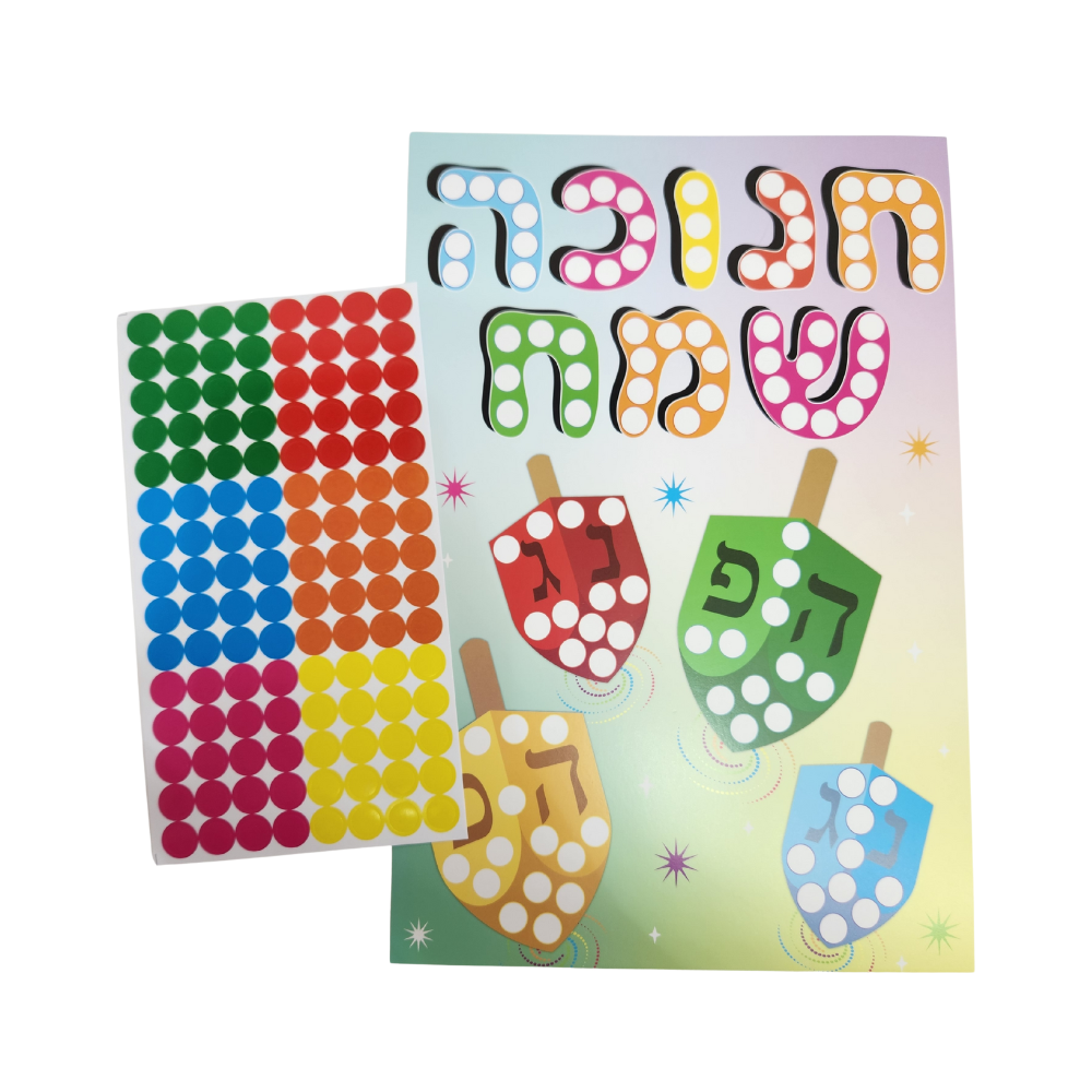 יצירה לחנוכה סביבונים + מדבקות A4,