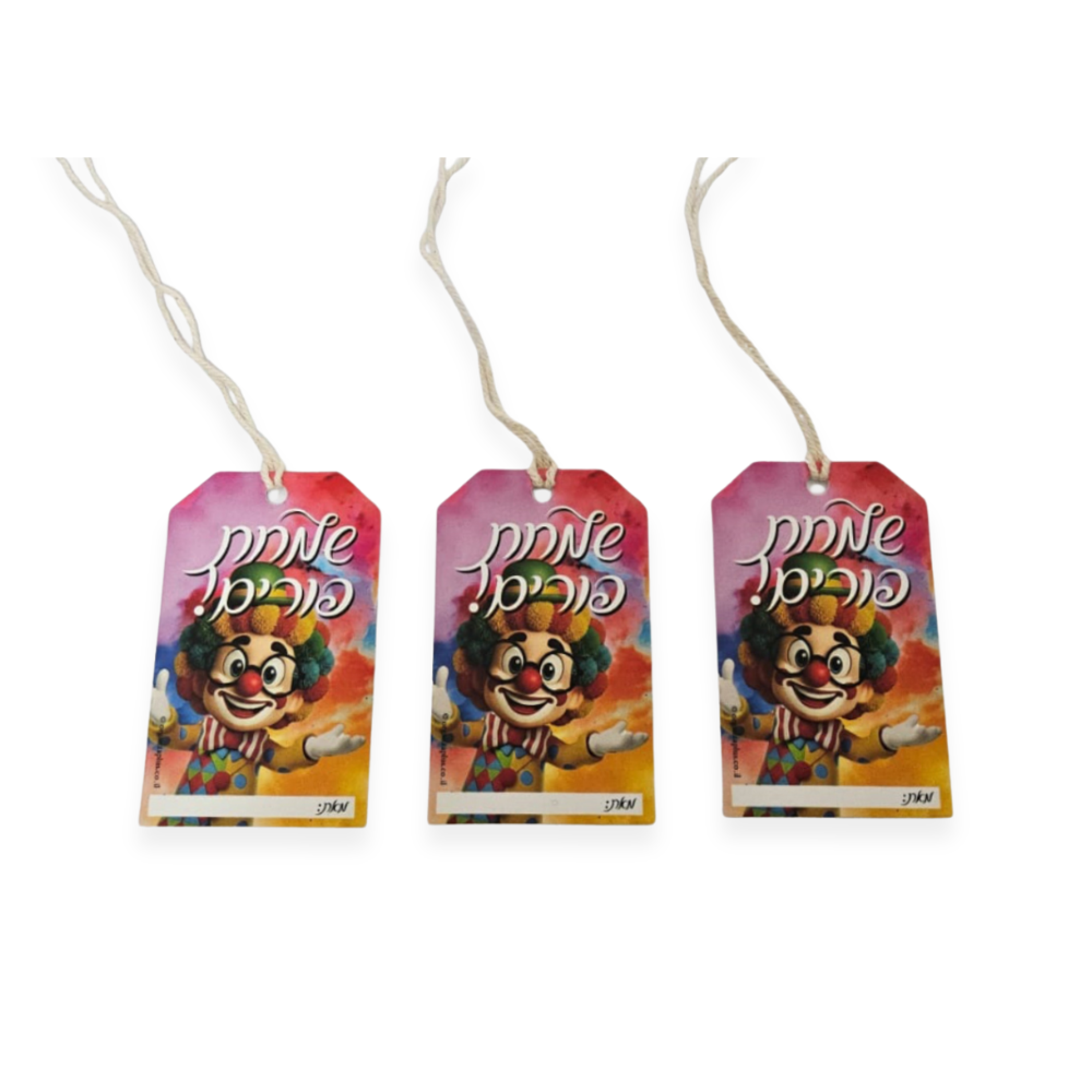 כרטיס ברכה ליצן לפורים + חוט - צבעוני,