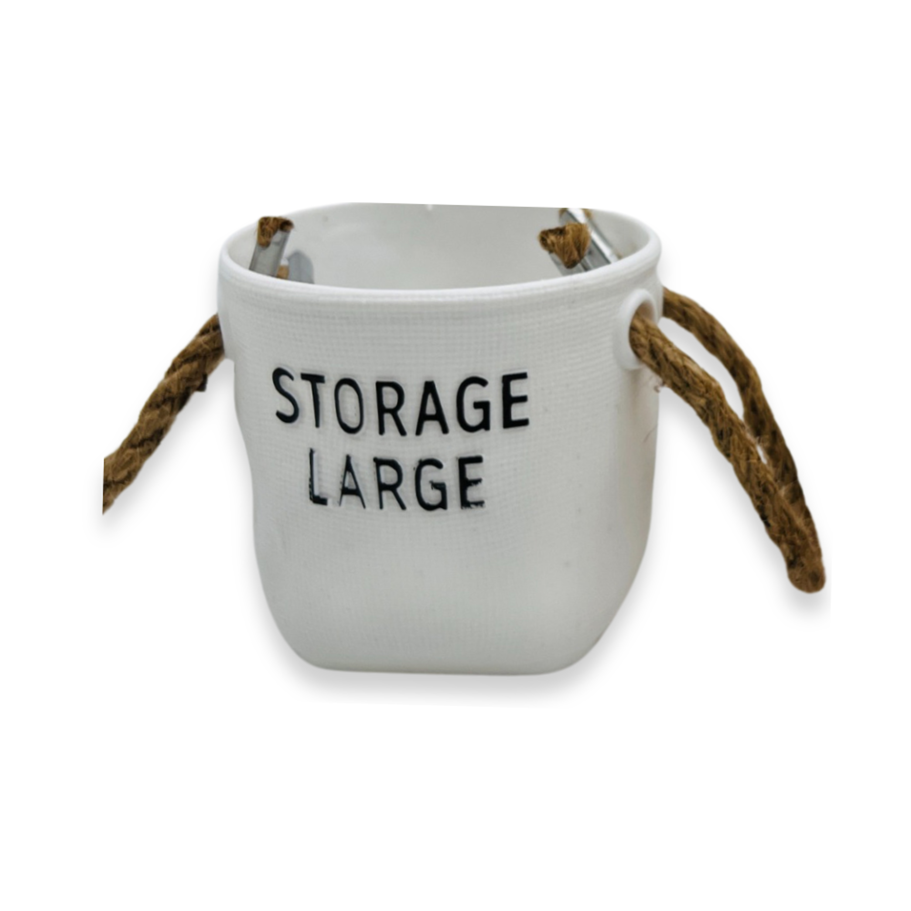 דלי דקורטיבי ידיות חבל - לבן,