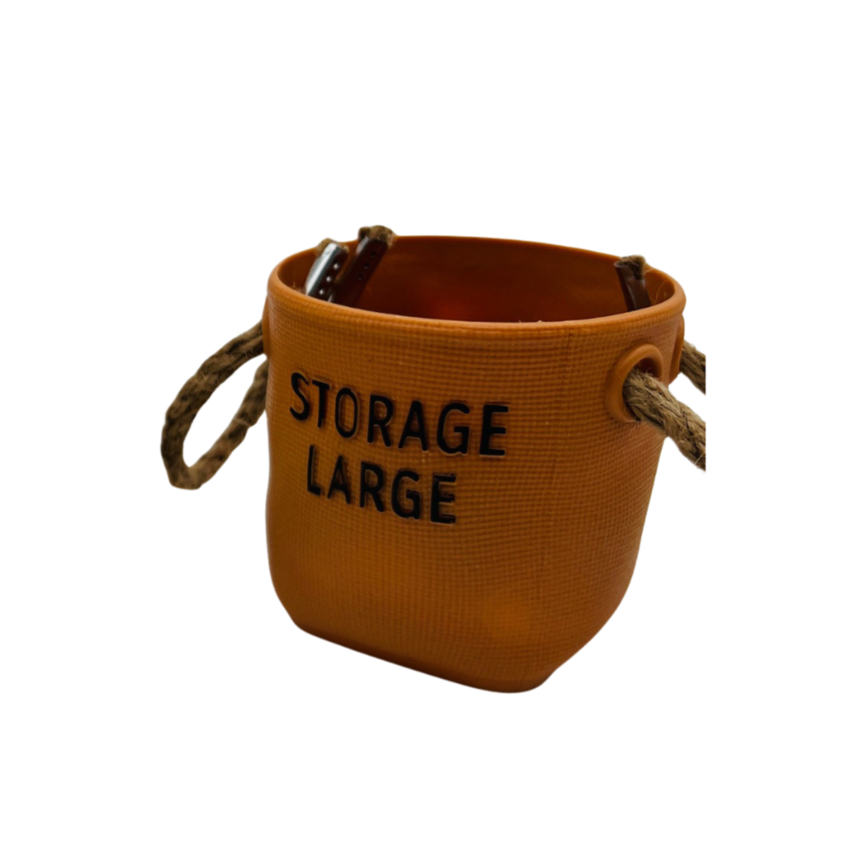 דלי בצבע קאמל עם ידיות חבל לעיצוב נקי וטבעי.