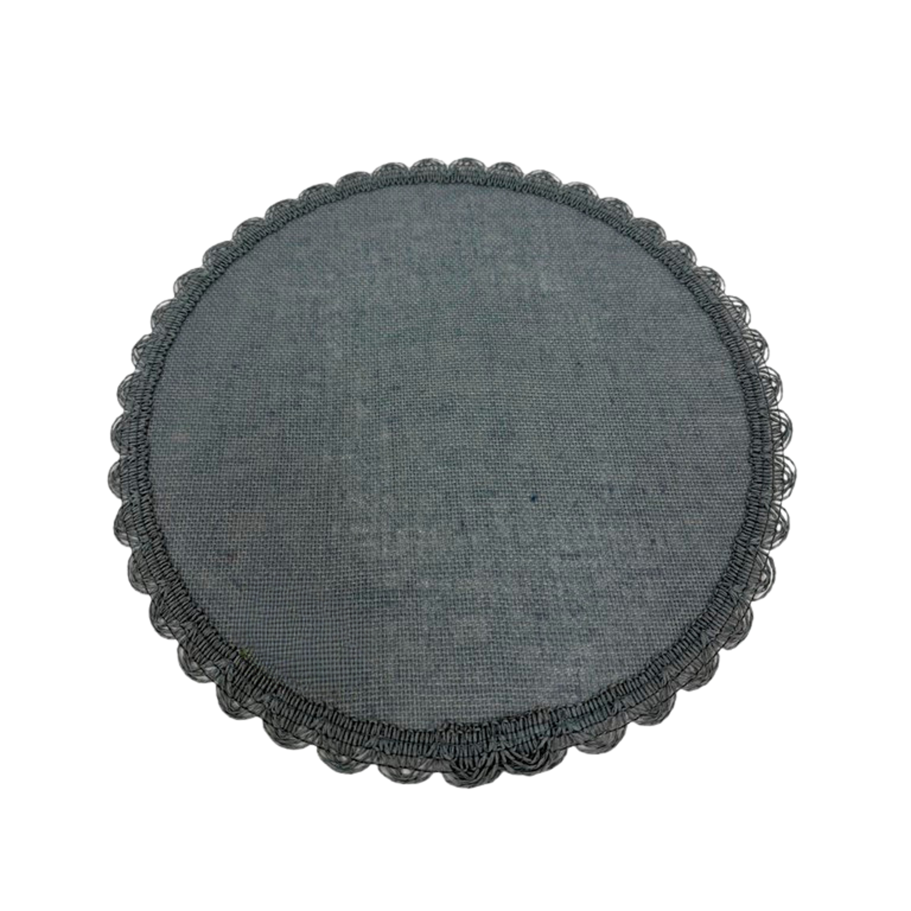 פלייסמנט עגול מבד יוטה בגוון אפור.