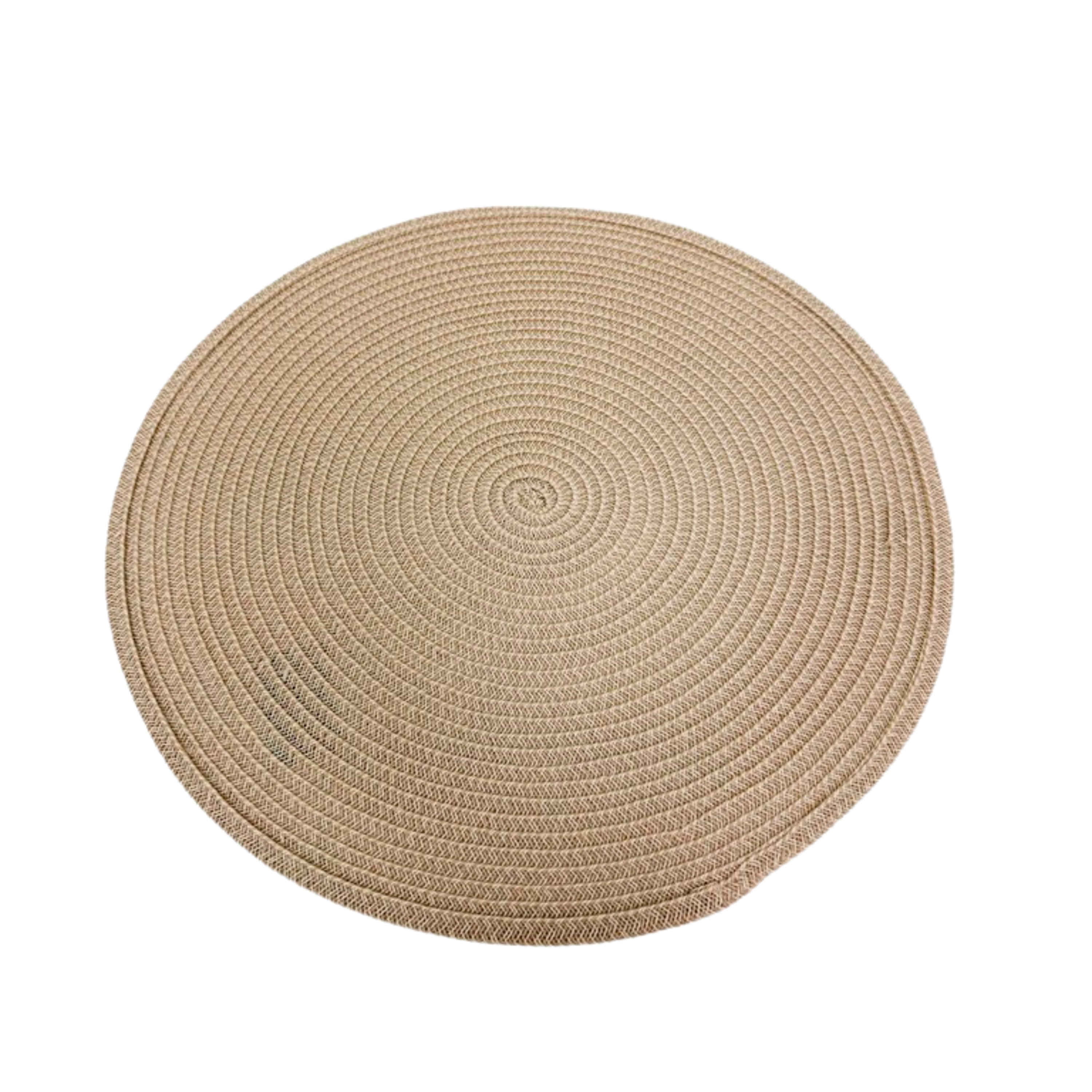 פלייסמנט עגול מבד סרוג בגוון קרם.